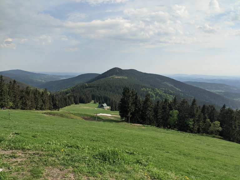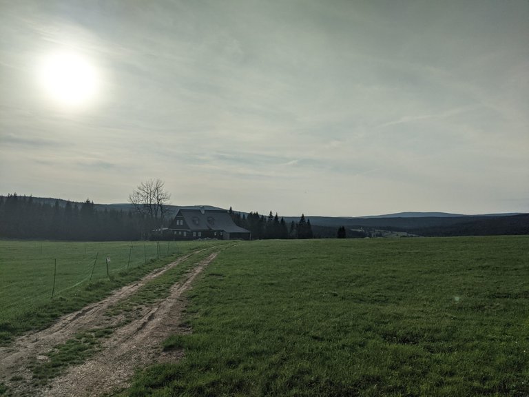 Stoupání do Jizerek je pozvolné, což je pro moje nohy to nejhorší, tak jen točím nejlehčí převod a postupně se nechávám předjíždět. Před zapadajícím sluncem nasvícenou Jizerkou u studánky doberu vodu a pak pozvolně klesám až do Libverdy. Jizerky jsou proti Krkonoším zadarmo, tak stíhám i Singltrek pod Smrkem za světla. Příjemná věc, ale za plného cyklistického provozu bych to jet nechtěl. Z Libverdy se postupně vystoupá a sjede do Oldřichova v Hájích - bylo by to pěkné, ale ze západu se rychle blíží bouřka, tak vymýšlím, jak dál.
