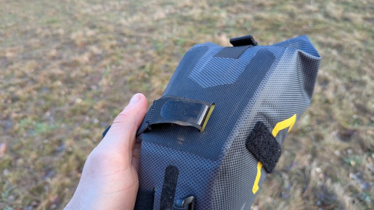 Zavírání funguje na rolovacím principu – tj. musíte 3× zarolovat pro správnou vodotěsnost a pak zavřít magnetem. Na konci brašny jakou magnetické manžety, které prostor zaklapnou, ale nechávají prostor na odpouštění vzduchu. V zimních rukavicích je otevírání náročnější, ale objevil jsem systém, se kterým to jde lépe – je to ukázané ve videu v úvodu článku.