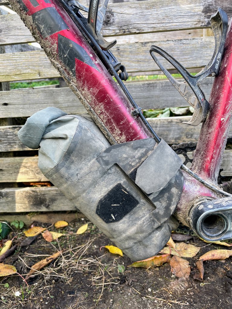 Brašna je připevněná kousek nad rámový trojúhelník, takže by nijak neměla ovlivňovat jízdní vlastnosti ani aerodynamiku.
