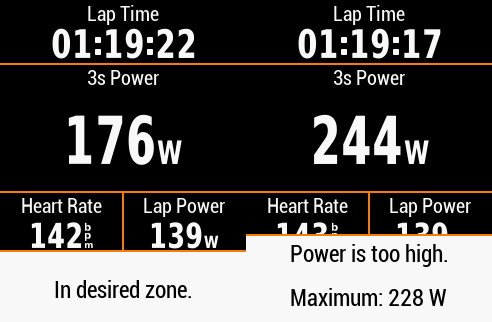 Já používám „Power Alert / Upozornění na výkon“, kde si omezuju maximální naměřený výkon. Pokud ho přesáhnu, Edge na mě pípne a upozorní mě na to.