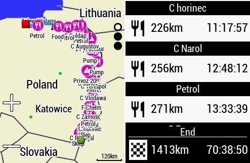 I tenhle základní itinerář je ale výbornou pomůckou. Kdo by se chtěl dívat, že mu do konce etapy zbývá 500 kilometrů? Mnohem lepší si je trasu rozsekat právě pomocí bodů zájmu. Každých 50 kilometrů alespoň jeden milník. V navigace pak krásně uvidím, že za 15 kilometrů tam mám obchod, kde si dám rohlík nebo mě čeká přístřešek, kde si můžu dáchnout.