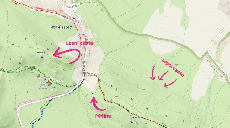 - Co v rámci map opravit nelze je, že vy sice víte, že někde cesta je, ale mapy.cz to neví. V takovém případě nelze naplánovat cestu „volným terénem“. Musí tam být stezka. Nebo si musíte trasu upravit až po importu do Garmina.