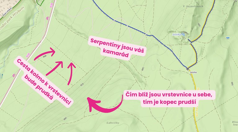 Než vůbec začnete plánovat trasu, je dobré se nejdříve seznámit s mapovou legendou. Ta vám napoví, po jakých cestách se budete pohybovat nebo kde můžete očekávat stoupání. Začněte tím, že si přepněte mapu do turistického módu. Teprve zde uvidíte všechny značené cesty.