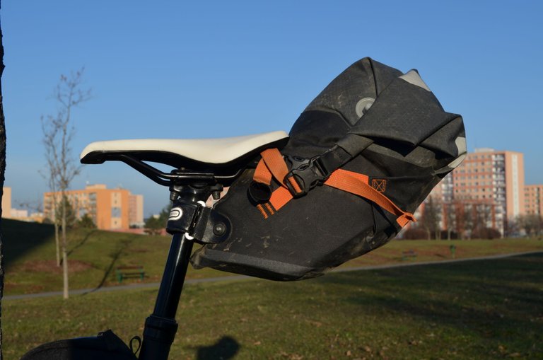 Začneme pěkně od konce. Podsedlová brašna se dává, jak už název napovídá, pod sedlo. Nemusí jí o žádný profesionální výrobek a dobrou práci odvede i obyčejný vodní vak s gumicuky. Je dobré se držet hmotnostně při zemi, protože přílišná váha může vytvářet nepříjemný houpací efekt.