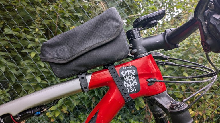 S uchycením brašny vždycky bojuju, protože je hodně těžké gumový pásek provléknout. Opět asi záleží na tloušťce rámu. Jakmile se to podaří, brašna drží opravdu přibitá. Respektive - brašna samotná se viklá ze strany na stranu, nehýbe se hlavně její základna. Osobně mi to vůbec nevadí. Mnohem horší jsou brašny, co se posouvají a musím je vystředňovat.