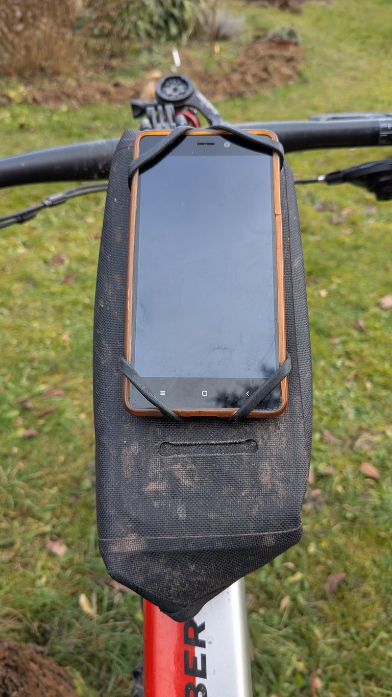 Do brašny se toho vejde opravdu hodně – 1,5 litru je víc než dostatečná kapacita. Na víku jsou dokonce úchyty na přichycení telefonu pomocí gumového držáku, i když tuhle funkci jsem přiznám moc nevyužil. Uchytávání telefonu není zrovna jednoduché – hlavně pokud ho máte větší – a za jízdy si ho do ruky nevezmete. Navíc bych se o něj v těžším terénu bál. Na silnici nebo lehký terén by neměl být problém. Zkoušel jsem s tím i významně třást a mobil držel.