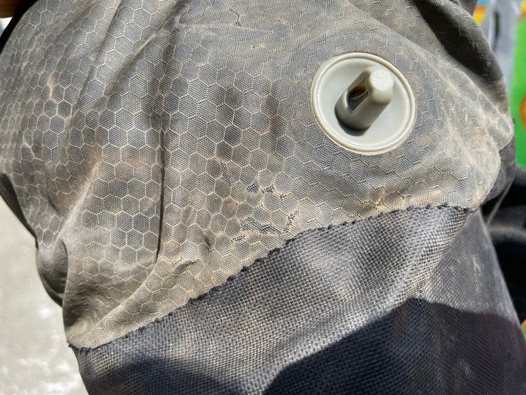 Než se pustím do samotných zkušeností, zhodnotil bych nejdříve jak materiál obstál proti zubu času. Zkoušel jsem to ve sprše a brašna je stále vodotěsná. Je potažená laminátem, který má zvyšovat vodotěsnost, ale je vidět, že na několik místech už je vydřený.