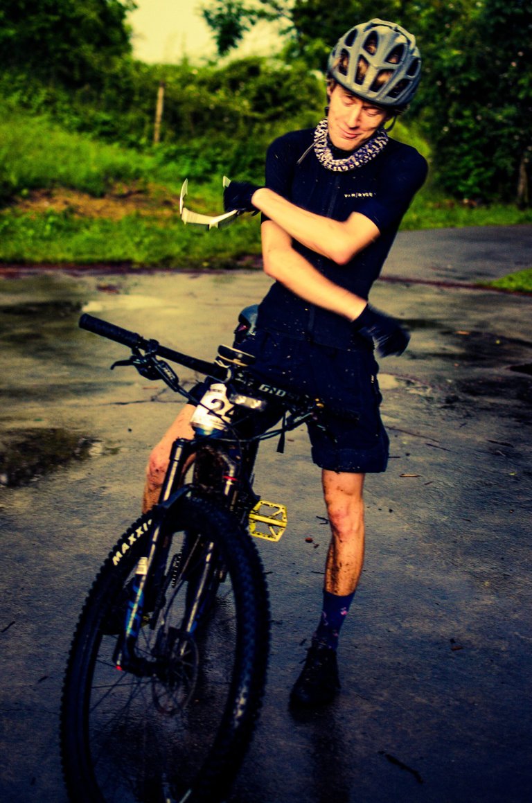 Dál jsem jel sám, nepršelo moc, ale cesty byly rozmáčené. V jednu chvíli jsem se dostal do čela závodu, první skupina totiž zastavila v Konzumu na „oběd“. Samozřejmě jsem to zjistil v prvním větším kopci, kdy mě předjeli. Chvíli poté mě předjel i Michal Ozogán se slovy: „první větší kopec a už tě předjíždím.“ Chtěl jsem mu to vrátit v prvním větším sjezdu, ale vypadla mi bunda a musel jsem ji upevnit. Přestože terén nebyl kdovíjak přívětivý, konečně nastala chvíle, kdy jsem mohl jet svoje tempo nerušen úplně sám mimo skupinu, a začal jsem si závod pořádně užívat.