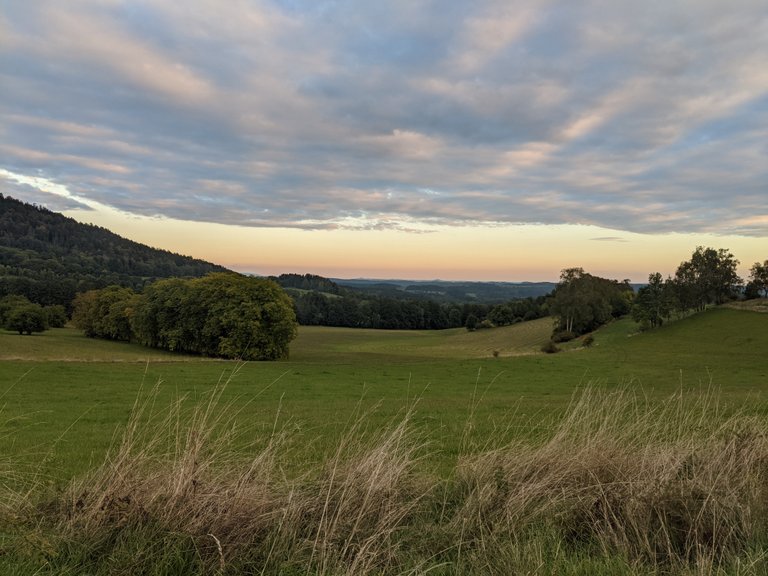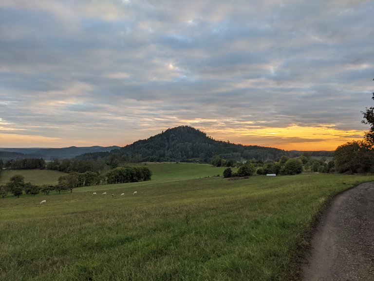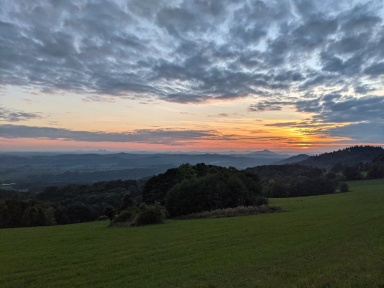 V Novinách pod Ralskem jsem využil na dlouhou dobu poslední možnosti nákupu zásob. O úseku do Osečné jsem slyšel, že to je rovina po asfaltu. Po asfaltu to sice z velké části bylo, ale celou dobu mírně do kopce se zpestřením v podobě Chrastenského vodopádu na Ploučnici. V Osečné už jsem tušil, že Ještěd za světla nestihnu, tak jsem se snažil dojet za světla co nejdál. Místní kraj mám celkem projetý, ale některé cesty jsem moc nepoznával. Nakonec jsem se před západem dostal až na Rašovku a z Ještědských svahů zažil nejhezčí západ závodu. Na vrchol jsem dorazil o hodinu později. To bylo hezčí, protože jsem nasvícený vysílač během výstupu několikrát zahlédl, což cestu lesem hodně ozvláštnilo.