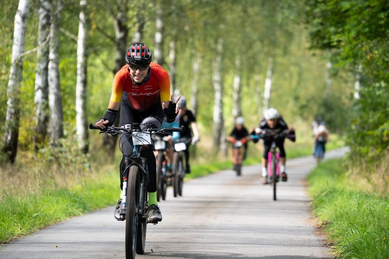 Písek je celkem malé město, tak jsem z něj byl hned pryč a podél Otavy po úzké a celkem náročné pěšince se vydal po levém břehu dále po trase. Později jsem se dozvěděl, že tahle cestička byla Baldovým nápadem. Jen mu nedošlo, že to většina závodníků pojede v noci a že by v tu chvíli raději jeli po cyklostezce na pravém břehu. Projel ji v noci taky a nakonec to za mě nebyl tak těžký úsek. Pro vyčerpaného cyklistu to ale mohlo být velké dobrodružství.