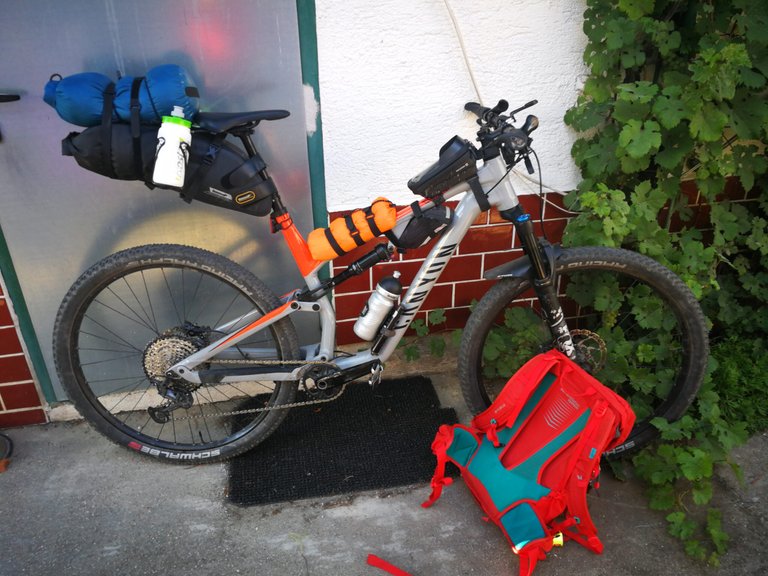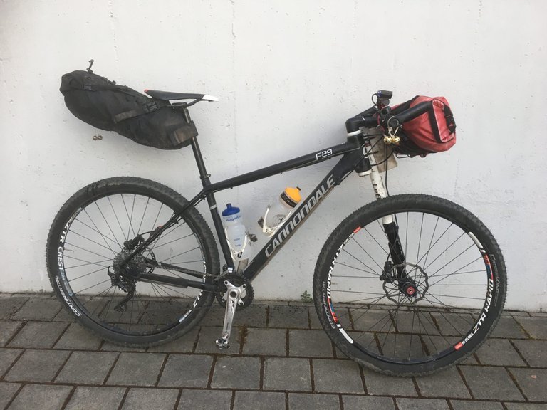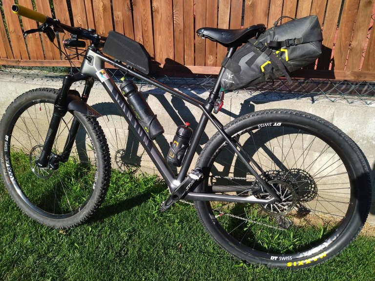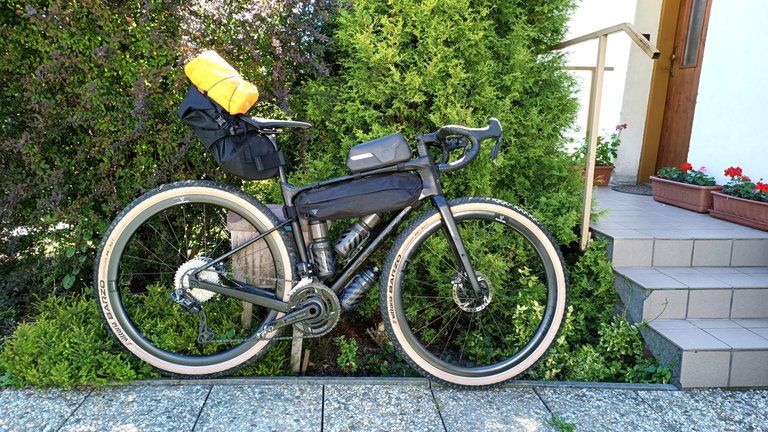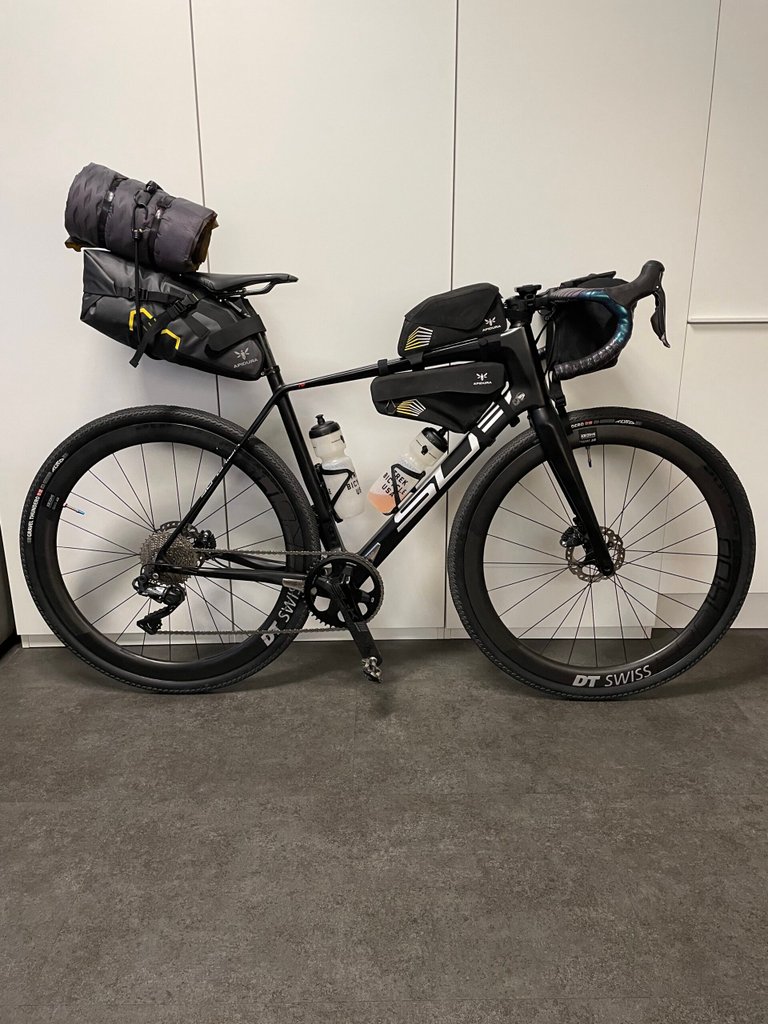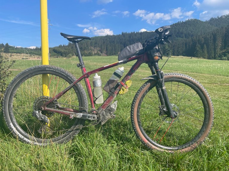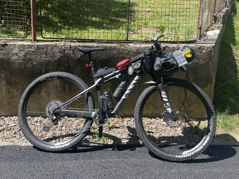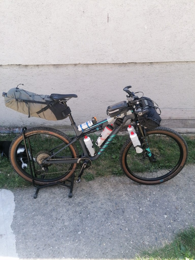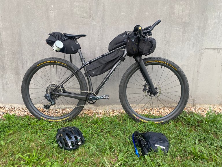 Výbava: Podsedlova a riadidlova brašna Topeak, navigácia Garmin Edge 830, Nafukovacia karimatka Warg, Hamaka Ticket to the Moon, Powerbank Xiaomi 25k mA, Svetlo Moon Vortex 1000, Spací vak do +10, Kamera GoPro Hero 8 a ....