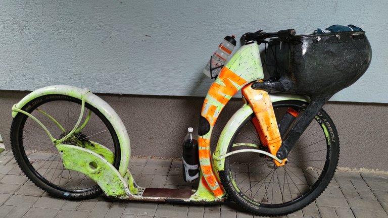 **Výbava:**Výbava: kolo Merit - Professor, GX 36/10-50, MTB galusky, hrazda, uhlí komponenty, sedlo Selle italia superflow, vidle Pells, Ergon gripy. Krom standardního vybavení budu poprvé v "závodním režimu" testovat prototyp bikepackingového oblečení, který vyvíjím. Akce do 700km nepovažuji z mého pohledu za bikepacking, není potřeba spát, tím pádem je skladba věcí dost rozličná. Není potřeba spací systém. Na druhou stranu je potřeba vše ladit, aby to bylo při ruce. Doplňky stravy, oblečení a další věci jsou díky absenci spacího systému jiné, především v tom, že nevyspalé tělo nebude mít dobrou termoregulaci (bude větší zima). Jezdivá trasa pro mě znamená: hrazda, 2" mtb galusky (nebo zippáky s 1,8" bezdušákama), pevná vidle, ergon gripy, tvrdé tretry. Problém nastává v tom, že v cíli se teprve začnu rozjíždět a přepínat do vytrvalostního režimu (svaly, trávení, hlava), proto jedu na start po vlastní ose a tím se "naladím" na ultravytrvalostní jízdu. Naježděno nemám moc, ale za poslední měsíc (před startem) jsem dal skoro 2000Km na horáku. Do ČR se musím vrátit relativně rychle, mám dost povinností, mimo jiné 14.8.2021 startuje bikepackingová akce https://wolf-man.cz/ 2222km bikepacking okolo české republiky který organizuji.