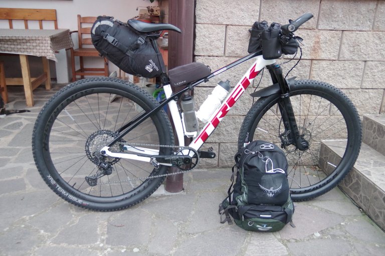 Výbava: Frame bag Zefal, top tupe bag Restrap, predne vaky na jedlo Blackburn. Idem na lahko, beriem len to najnutnejsie.